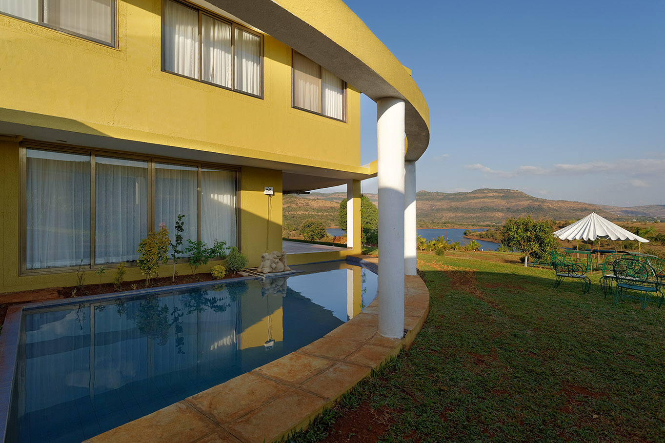 Le Farm is a unique experience of spending time at a modern farm. While one enjoys the plush amenities, the connection with nature is still very real, tangible and present. The rooms are designed as a celebration of nature and hence every room opens to a marvelous view of its own. The landscape will remind you the charming French Highlands. The verdant green cover, placid lake and undulating hilly terrains, coupled with the farm itself make it a perfect holiday stay.